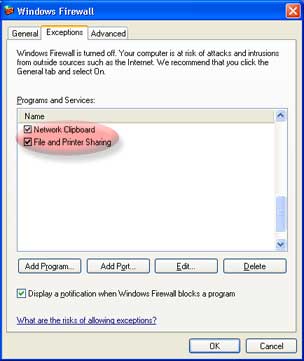 Printer Sharing are enabled (if you use TCP/IP