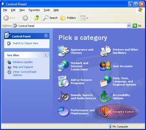 then choose Control Panel, click on Security